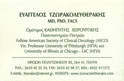1982 – Αύγουστος 2014: Αυτοδύναμο διδακτικό έργο σε θέματα Γενικής Χειρουργικής, Ογκολογίας και Μεταμοσχεύσεων στο Ιατρικό Τμήμα Πανεπιστημίου Πατρών.